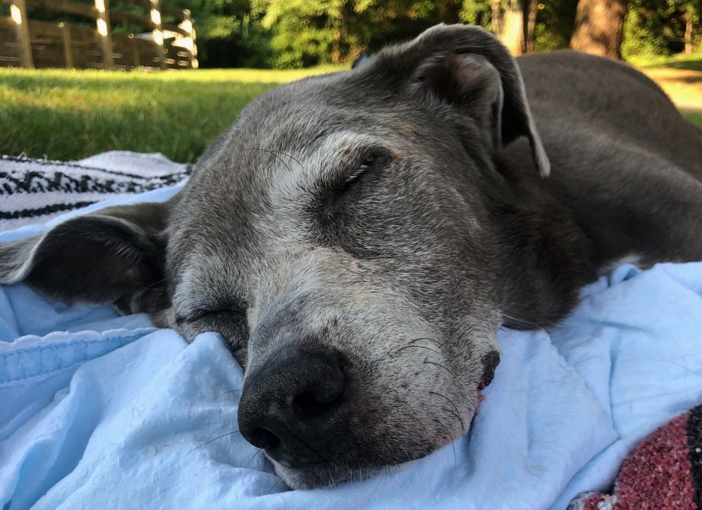 And so Carrie and I came together on a grassy patch under a big pine tree behind the wonderful Georgetown Veterinary Hospital for one last visit with her. She had developed pancreatitis and wasn’t responding well. She had stopped eating and drinking. She made it very clear it was time.